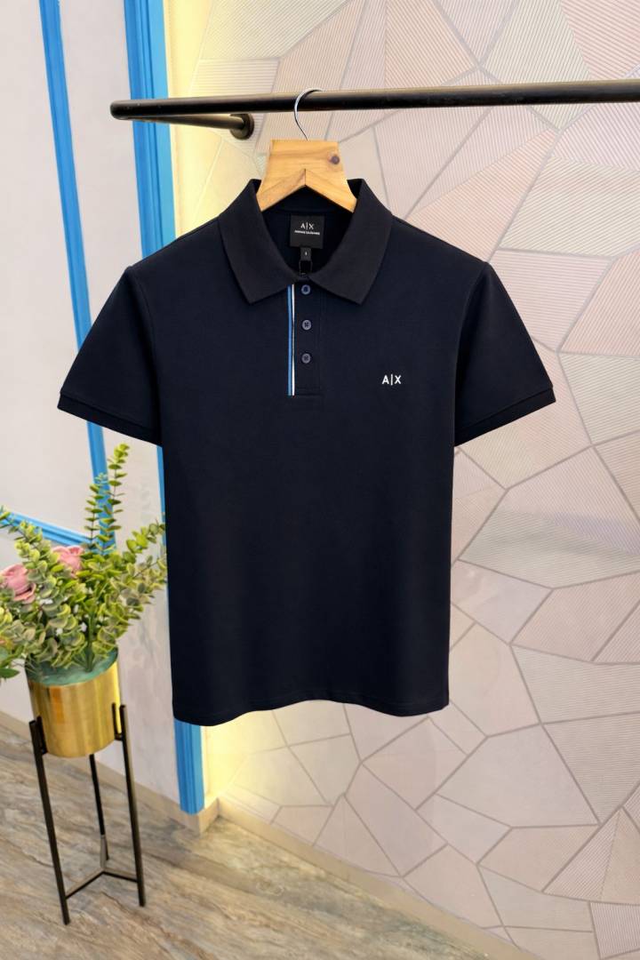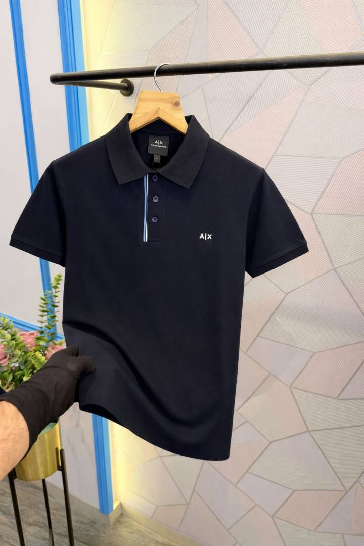 Amir i Imported knitted Monogram Super Premium Navy Collar Neck Polo T-shirt F3480-NY