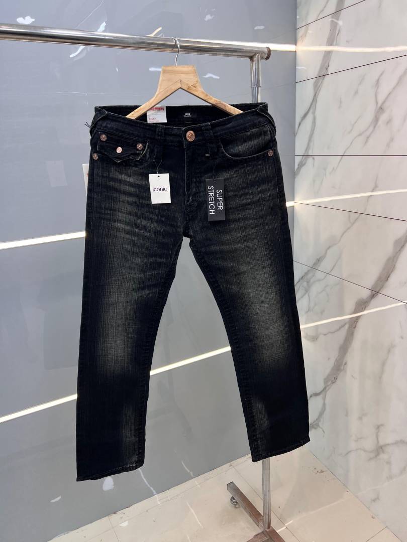 True Religio n Blue Shade Premium Imported Stretchable Lycra Fabric Straight Fit Denim with Back Flap pockets 2585